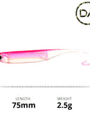 Measuring 75mm in length and weighing 2.5g, this sophisticated lure is ideal for exploring the extremes of any waters.