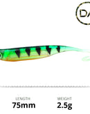 Measuring 75mm in length and weighing 2.5g, this sophisticated lure is ideal for exploring the extremes of any waters.