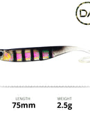 Measuring 75mm in length and weighing 2.5g, this sophisticated lure is ideal for exploring the extremes of any waters.