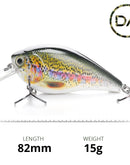 Catch big with Decoy Angling's Large Rainbow Trout Crankbait Floating Lure (82mm). With its amazing printed body, lifelike 3D eyes and Dynamic Ball Bearing Technology (DBBT), this crankbait lure is sure to be noticed by the predators in your waters.